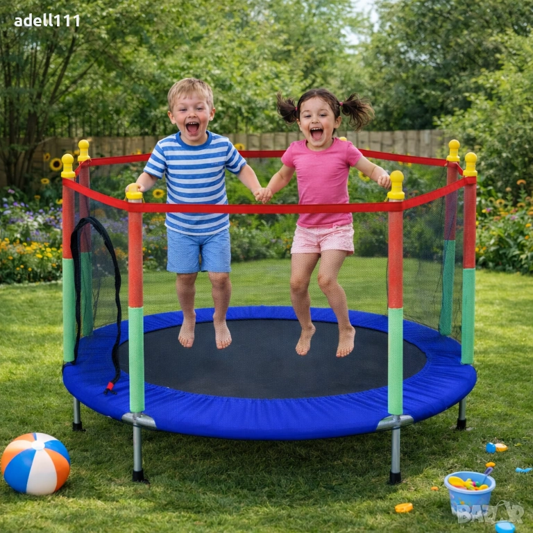 Промо Детски Батут с Предпазна мрежа с Диаметър 140 см.Издържа до 150 кг