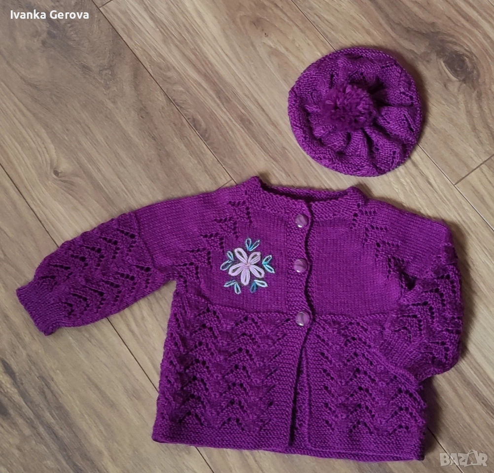 Комплект от жакетче и баретка ръчно плетени от мерино → Обява 53479161
