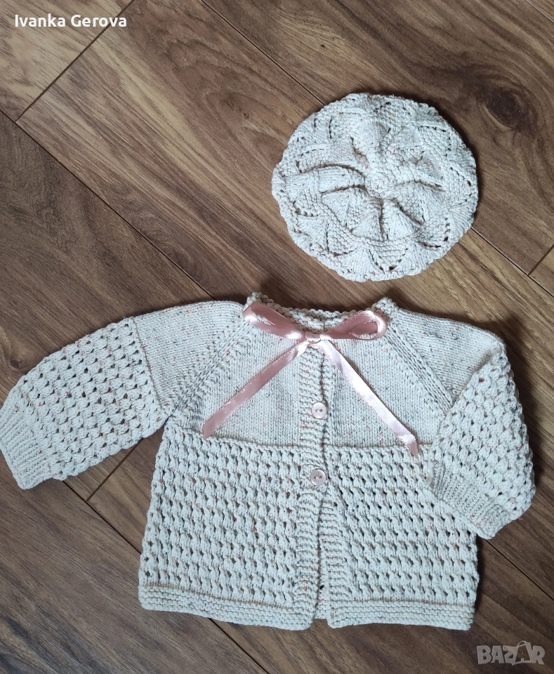 Ръчно изработен бебешки комплект от жакетче и баретка,от памучна смес