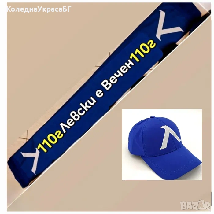 Шапка + Шал Левски е Вечен 2025г 110г Юбилеен Фенски комплект → Обява 53479350