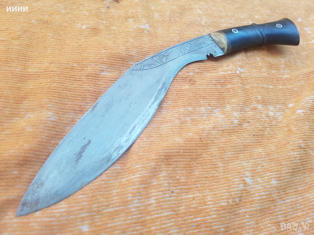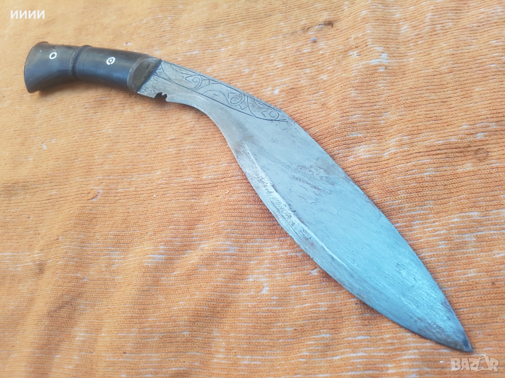 Изработен в началото на 20 век, за нуждите на индонепалската армия. В запазено състояние, без забележки. Острието, е гравирано от двете си страни. Дръжка от биволски рог. Кания, отвътре дървена, отвън облицована с кожа от воден бивол и украсена с полускъпоценни камъни, като 3 от тях са паднали по времето. Обща дължина, без канията 39 см. Ножът- МЕЧ е на въоръжение и до днес, но вече в нова форма.