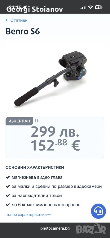 Продавам статив Benro A2580T с видео глава Benro S6. Нови с компактен и устойчив дизайн. Купувани са за 519лв