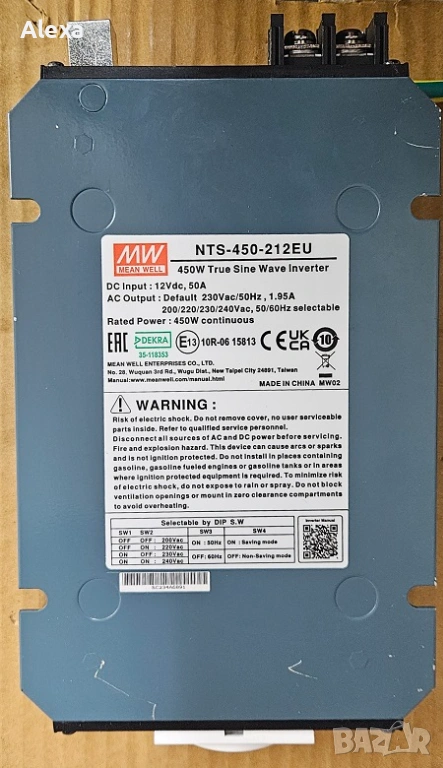 Продавам NTS-450-212EU – висококачествен DC/AC конвертор (инвертор), подходящ за преобразуване на постоянно напрежение 12V в променливо напрежение 220V.