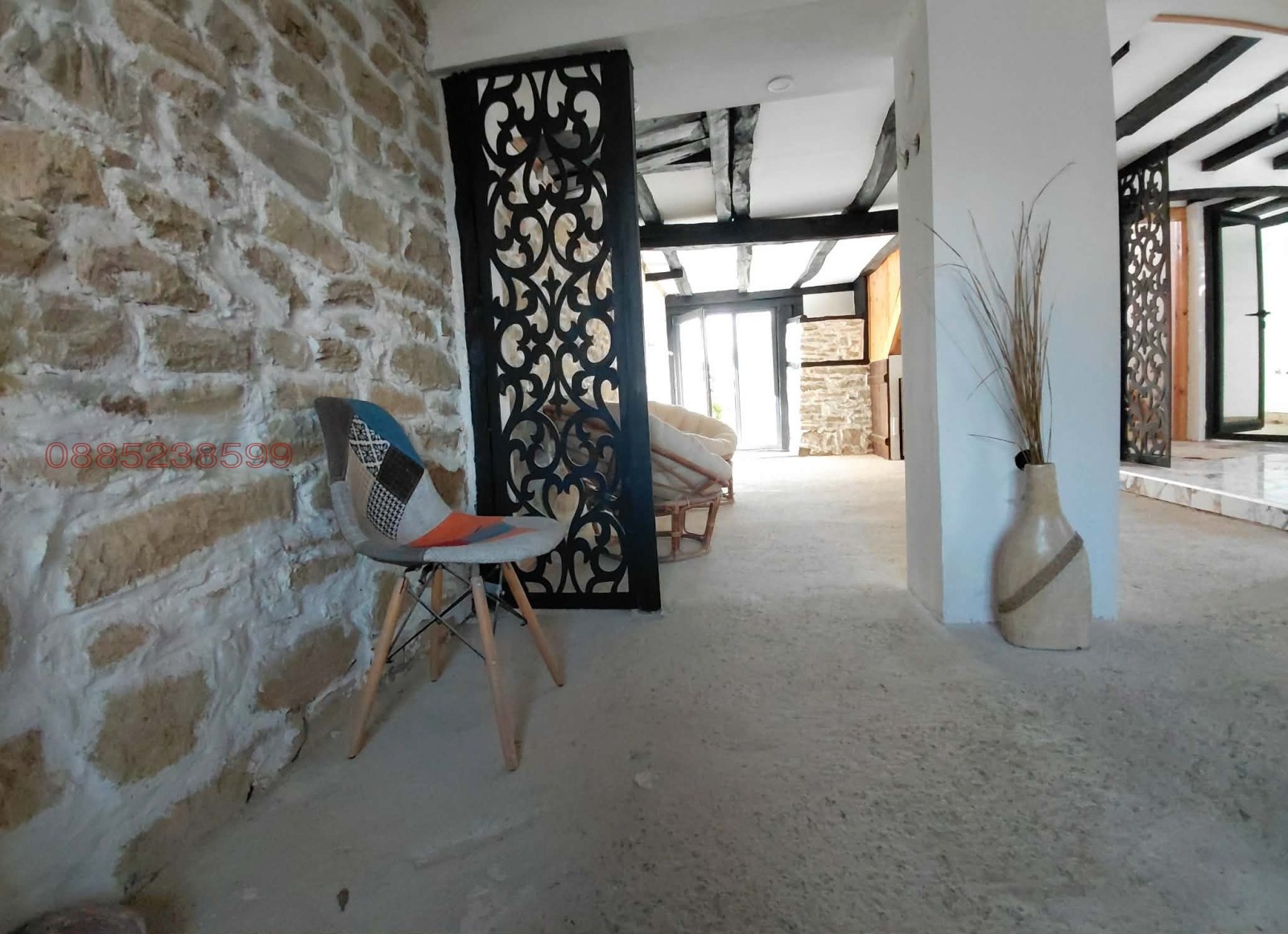 Къщата е на 2 етажа с таван и вътрешно стълбище. На първия етаж се разполагат входно антре, кухня , трапезария,хол и баня с тоалетна. На втория етаж има 3 спални с вградени гардероби и баня с тоалетна.В едната спалня има и запазено огнище. Къщата е изцяло реновирана , с изградена ел. и ВИК мрежа,пвц дограма, санирана е и облицована с дърво и камък. Покрива е изцяло с 'Брамак', дървената конструкция е подменена с нова ,обшита с дърво, поставена мембрана,капандура ,улуци и т.н.
