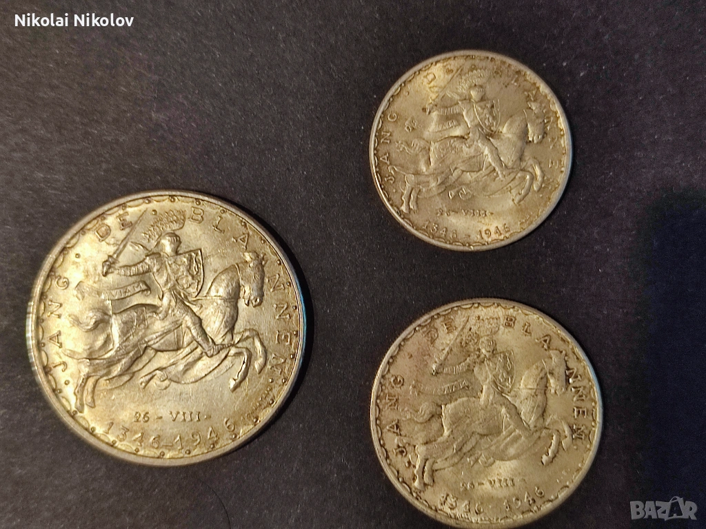 Представям Ви един много интересен и красив лот от сребърни монети, сечени за Люксембург по повод отбелязване 600 годишнинаната от смъртта на Йохан Слепия, умрял при битка с англичаните през 1346 г. при битката в Креки.