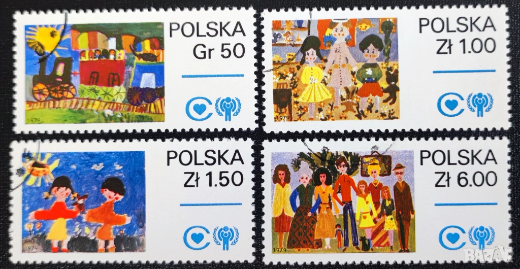 32. Международна година на детето. Детски рисунки. №№ 2603-2606. С филателен печат. Цена 0,30 €