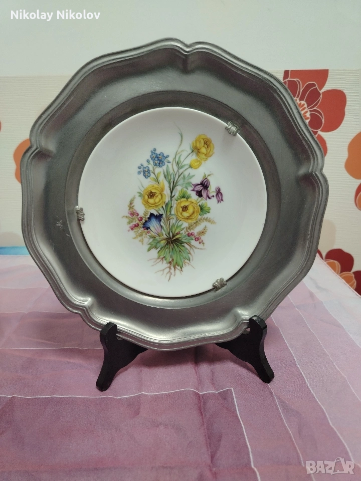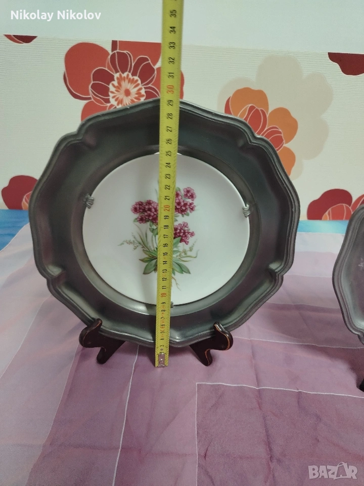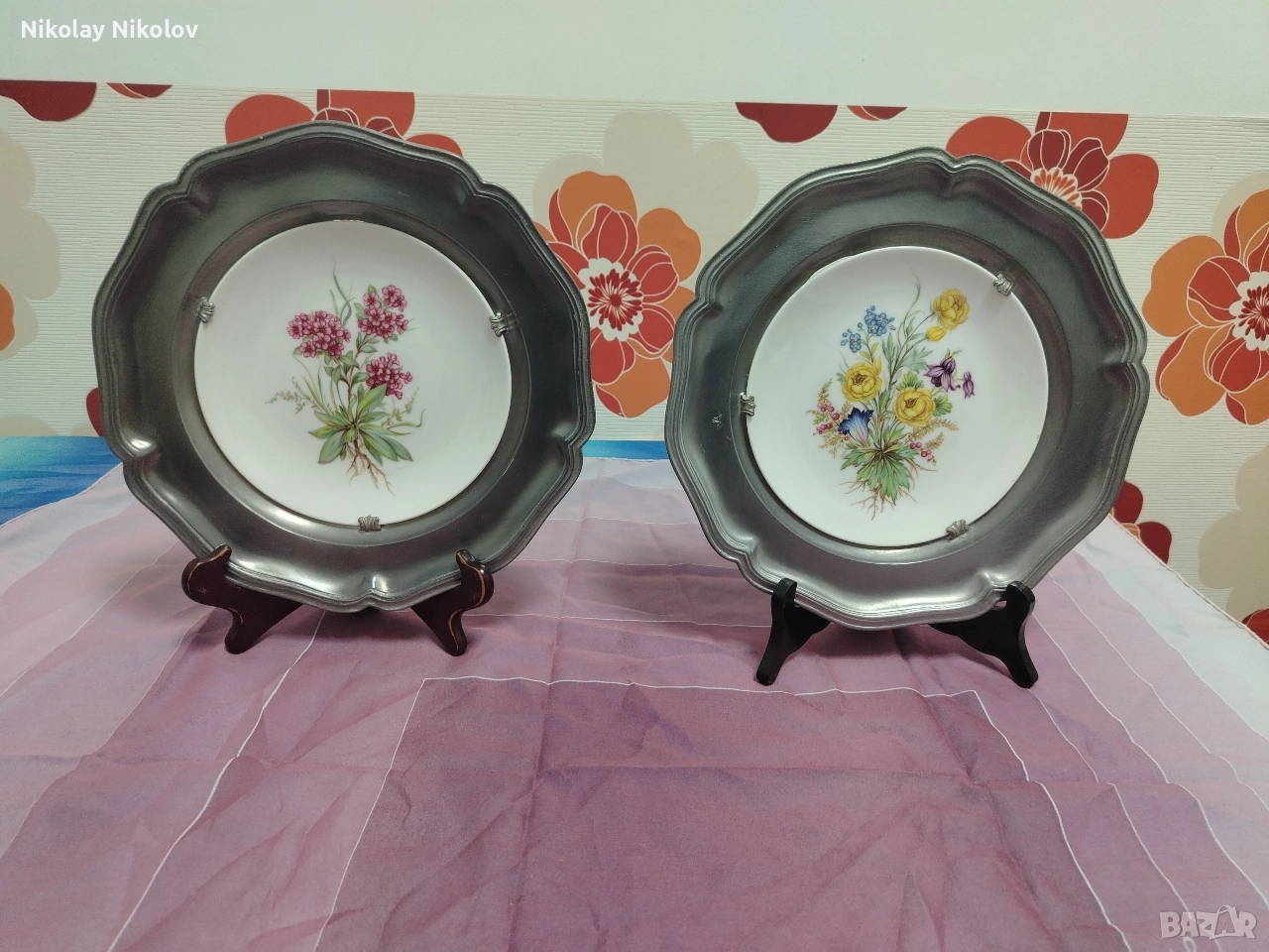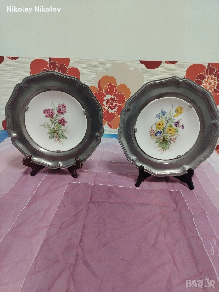 Порцеланови чинии за стена с калаена рамка → Обява 53479863