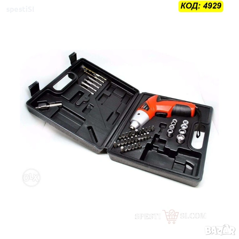 Уредът разполага с бутон за смяна на посоката на въртене (завиване и развиване) и ясен светлинен индикатор, който показва нивото на оставащия заряд. Идва в здрав пластмасов куфар, в който всеки накрайник има свое място, за да не губите частите.