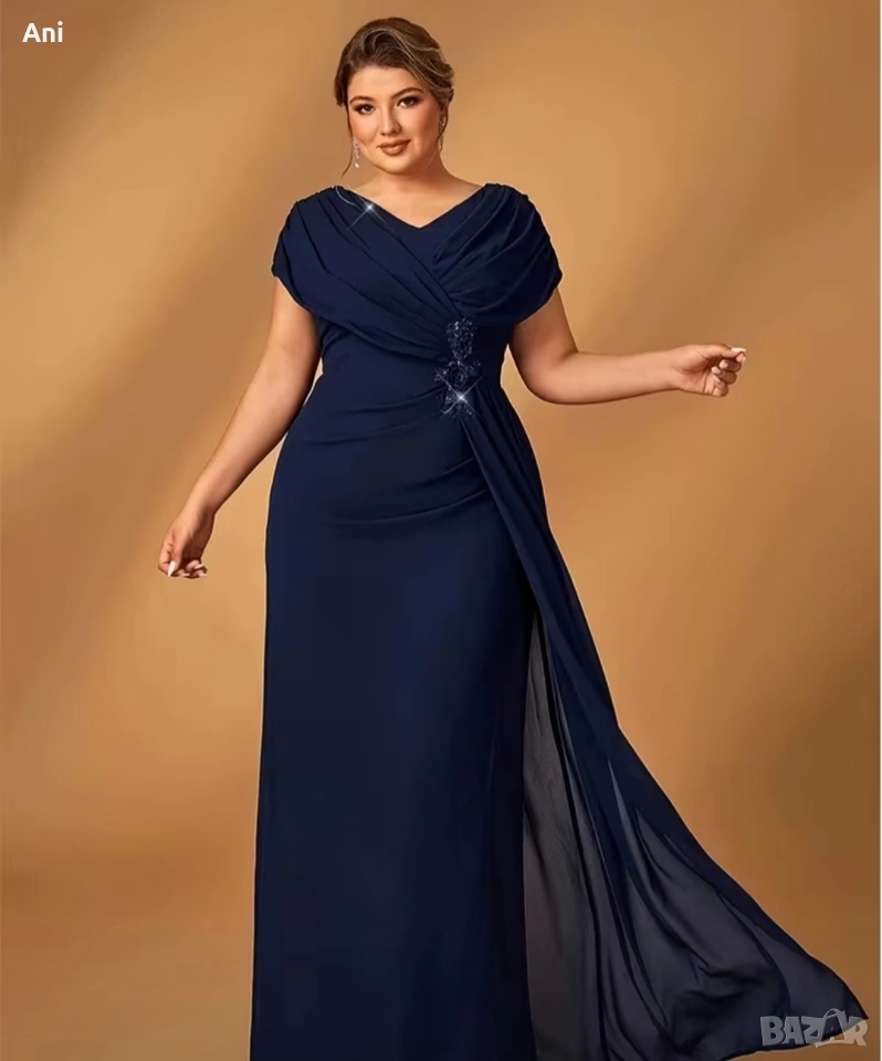 Нова дълга официална рокля в тъмносин цвят. Стилна и удобна, подходяща за различни поводи.