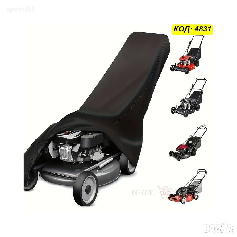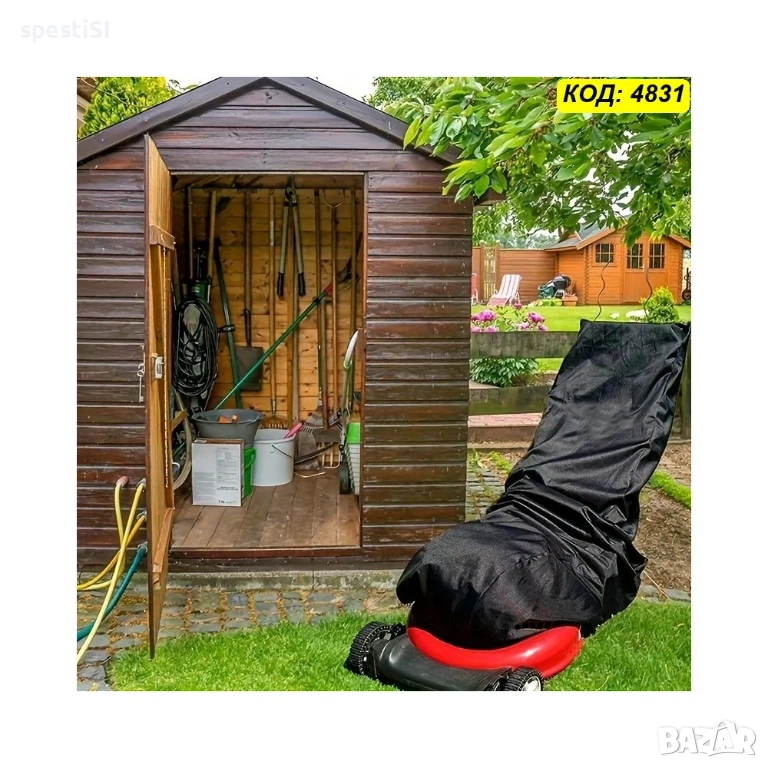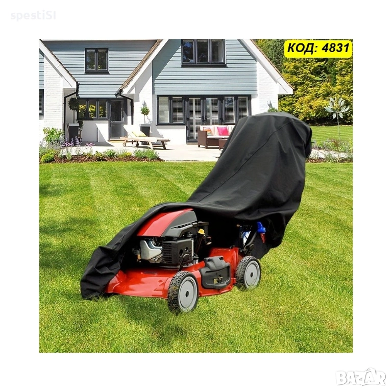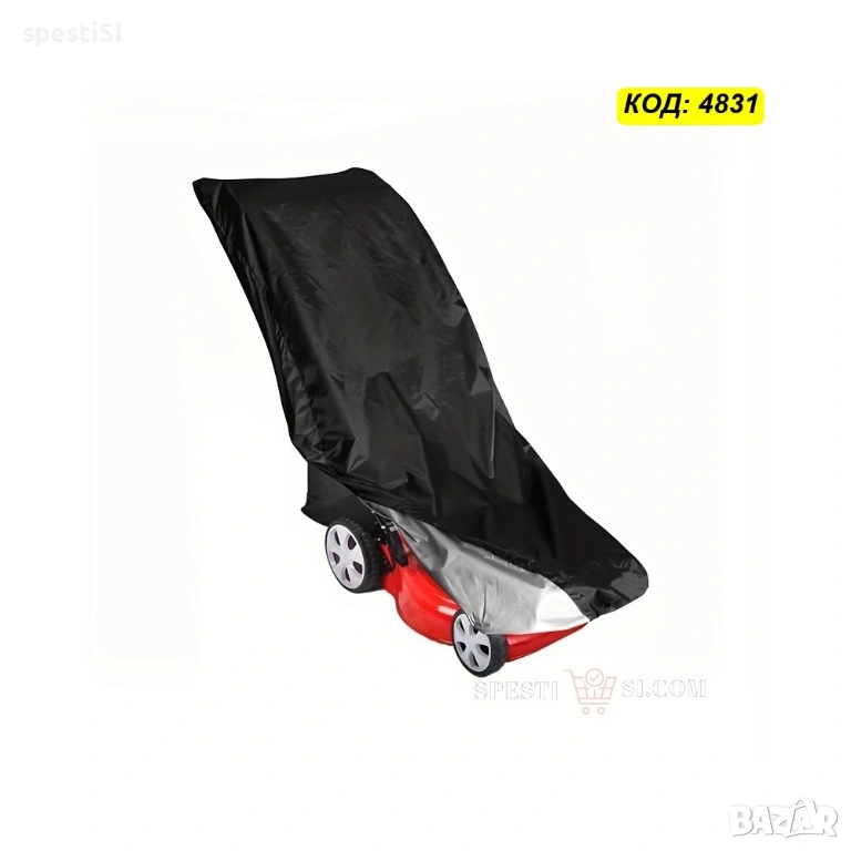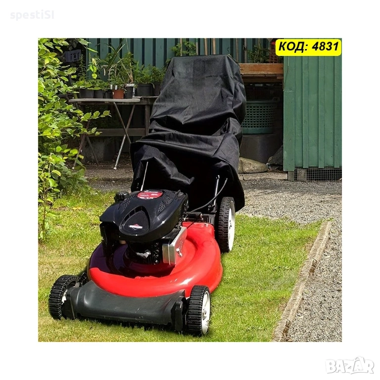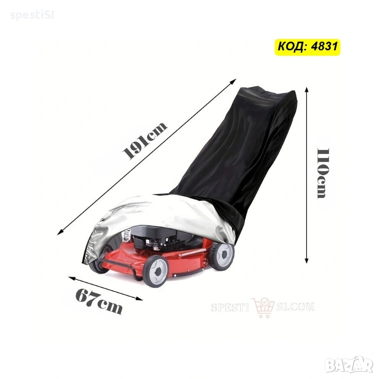Важно предимство е вътрешният сребрист слой. Той служи като щит срещу UV лъчите, предотвратявайки прегряване на пластмасовите елементи и напукване на маркучите от силното слънце през лятото. Дизайнът е съобразен с формата на стандартните бутащи косачки, като покрива изцяло машината от колелата до върха на ръкохватката.