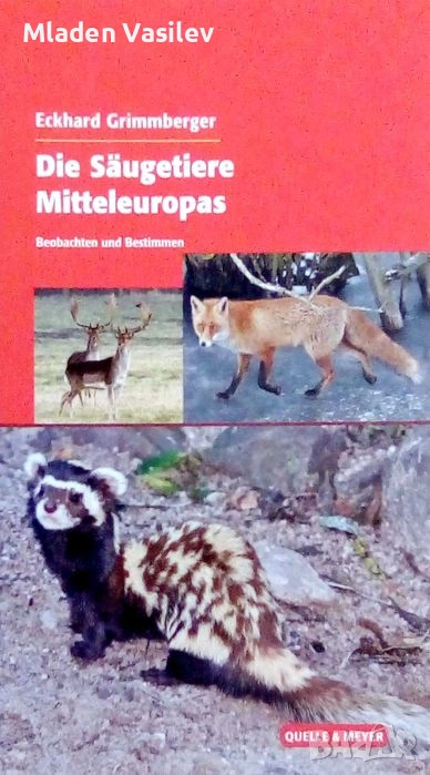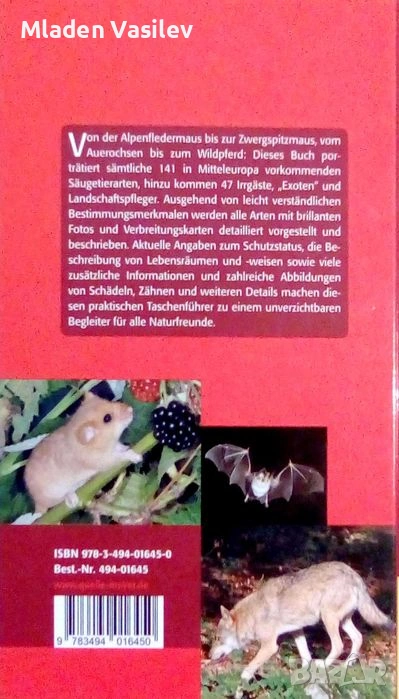 Снимков определител на бозайниците в Европа. Немски език. Луксозно издание с твърди корици. 695 страници. Имам 2 авторски фотографии в него.