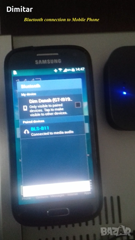 В мрежата Bluetooth адаптера се представя като:"BLS-B11 "с който ТРЯБВА да
