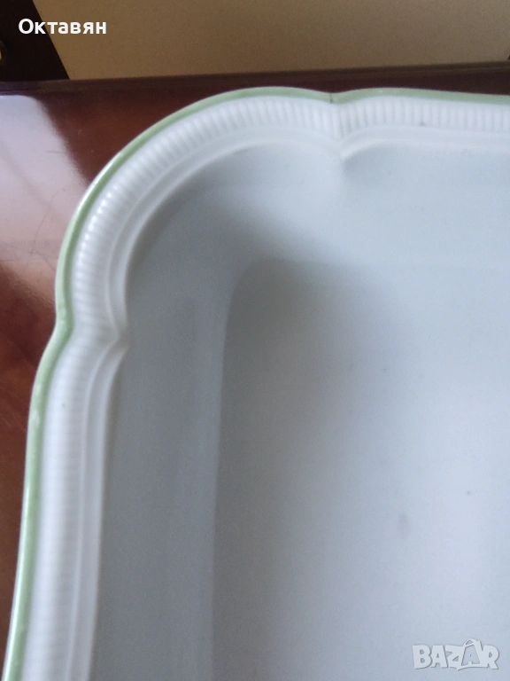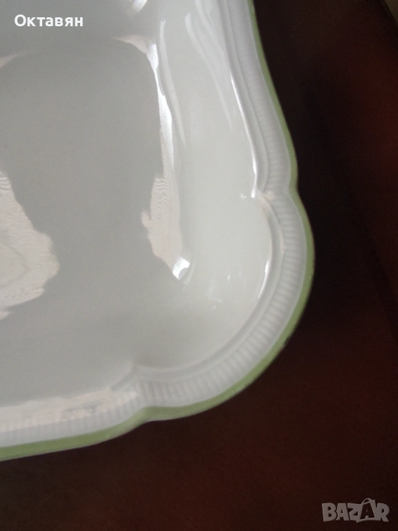 Винтидж голяма порцеланова купа с релефен борд и зелен кант в отлично винтидж състояние, без чипове или пукнатини, маркирана, произведена от "Hutshenreuther Selb-Weimar, USZone"- Германия от около 1946-49 година, когато Бавария е била част от американската окупационна зона в Германия , купа с история!