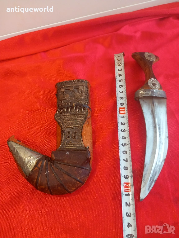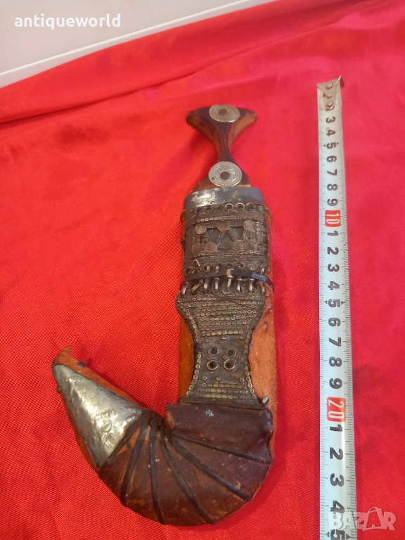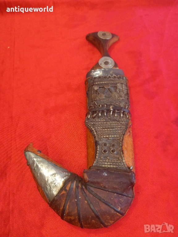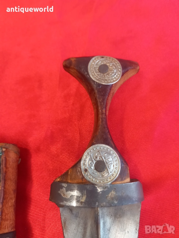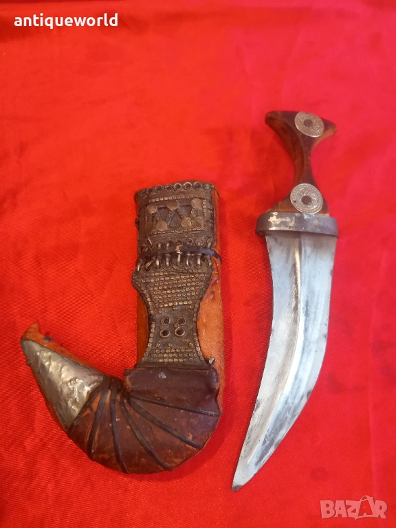 Много Рядка Красива Стара Дамска Йеменска Джамбия, Ханджар, Кама.Острието е Без Язви, Дървена Кания Обвита с Кожа и Сребърни Филигранни Декорации. Края на 19 Век.