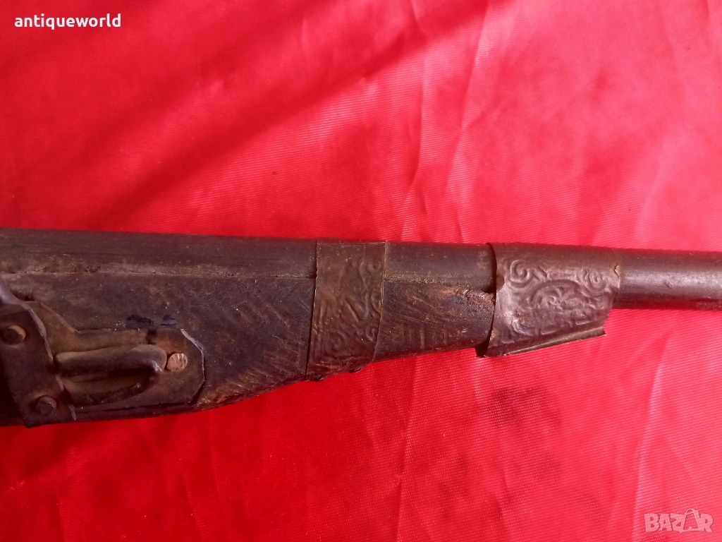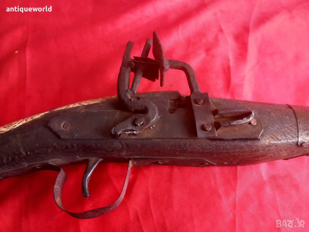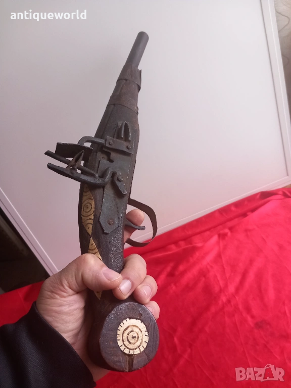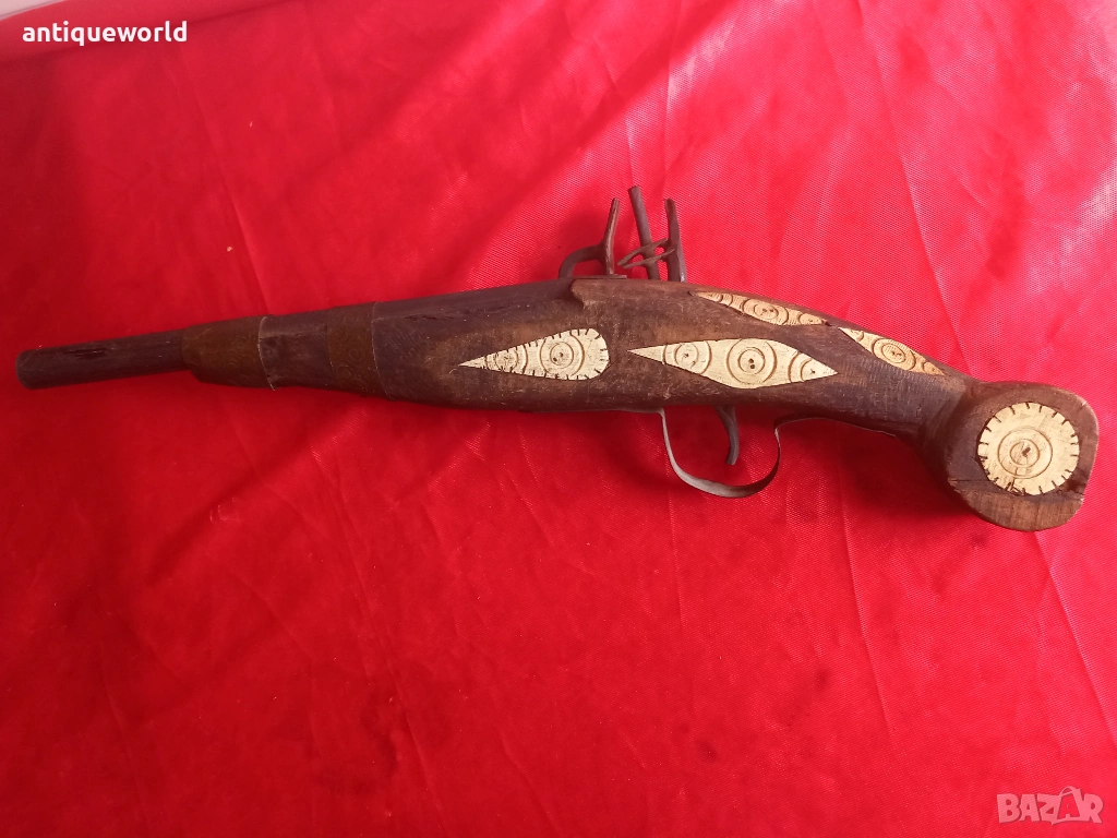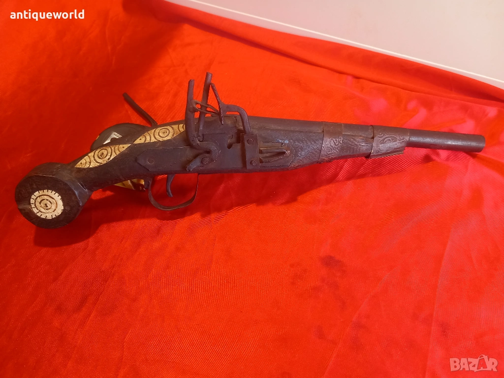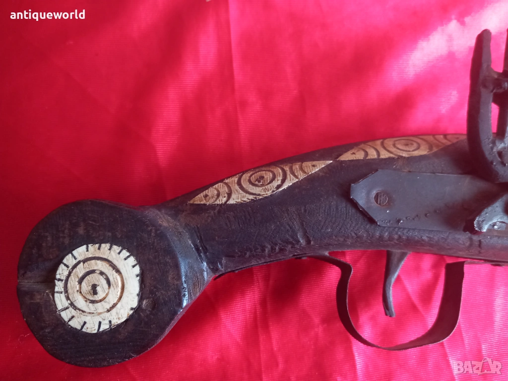 Красив Стар Орнаментиран Османски Пищов, Кремаклия, Пистолет Северна Африка.Механизма Не Работи ,Всичко е Заяло,Дървенията е Без Дървояди.Стара Реплика.