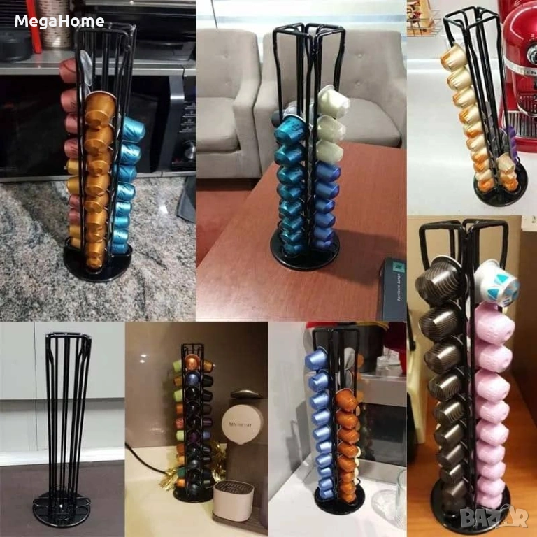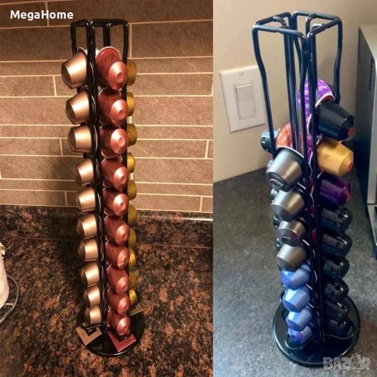 Стойката тип вертикален органайзер побира цели 40 броя кафе капсули.