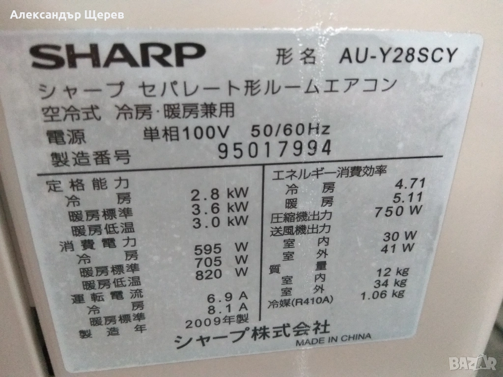 Sharp AY-Y28SC/AU-Y28SCY Kireion (инверторна сплит система)