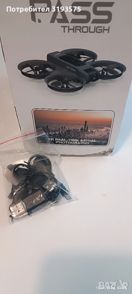 Дрона е ползван 2-3 пъти. Идеален за деца. С очилата се гледа през камерата на дрона. Има sd карта за запис на снимки и видео. Дистанционното също се зарежда с кабел. Оригиналната кутия и упътване.
