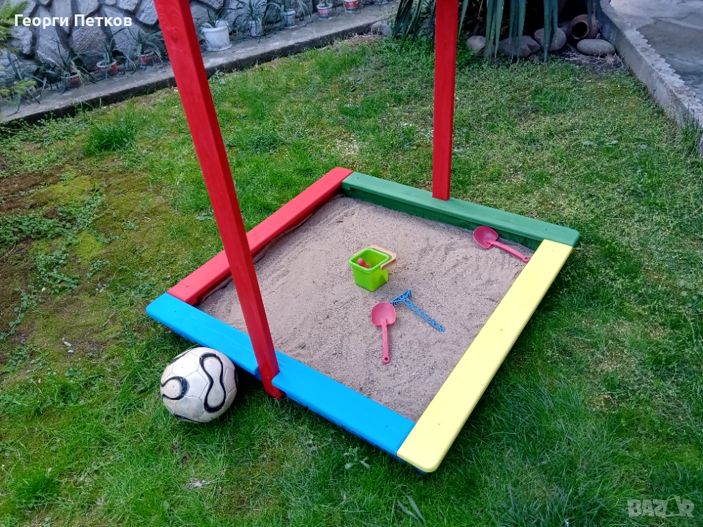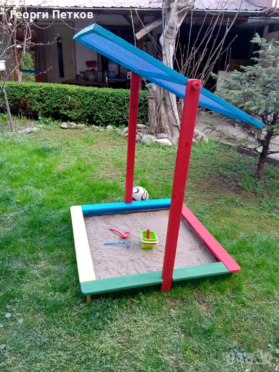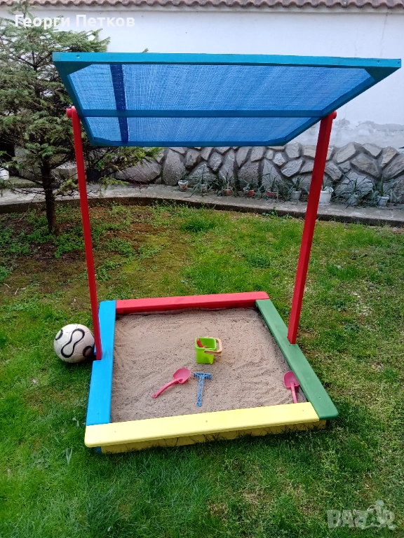 Детски Пясъчник със сенник,цветен,плитък.