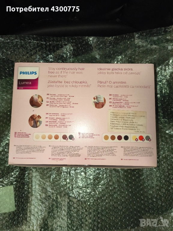 За безопасност вграденият сензор за цвят на кожата измерва тона на третираната кожа в началото на всяка сесия и от време на време през самата сесията. Ако открие тон на кожата, който е твърде тъмен за този продукт, той автоматично ще спре да излъчва импулси.