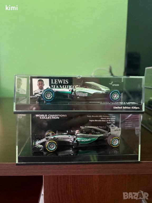 продавам колекция формула1 Minichamps 1:43 на Mercedes моделите се продават и по отделно има коментар на цената