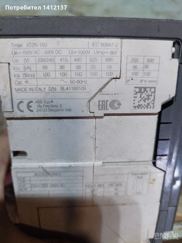 Продавам мощен триполюсен автоматичен прекъсвач с лят корпус ABB SACE Tmax XT2N 160.