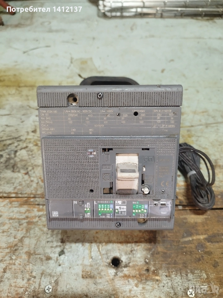 Продавам мощен триполюсен автоматичен прекъсвач с лят корпус ABB SACE Tmax XT2N 160. Този модел е проектиран за надеждна защита на индустриални електрически инсталации и системи за разпределение на енергия. Оборудван е с електронен блок за управление (Release), който осигурява гъвкавост при настройката на защитните криви. Технически данни и параметри: Тип устройство: Автоматичен прекъсвач в лят корпус (MCCB). Номинален непрекъснат ток ( ): 160A. Номинално работно напрежение ( ): 690V AC / 500V DC. Номинално изолационно напрежение ( ): 1000V. Номинално импулсно издържано напрежение ( ): 8kV. Честота: 50/60 Hz. Прекъсвателна способност ( ) при променлив ток (AC): 220/230V: 65 kA. 380/415V: 36 kA. 440V: 36 kA. 500V: 30 kA. 690V: 10 kA. Дълготрайност и механични данни: Механична устойчивост: 25 000 цикъла (при 240 операции на час). Електрическа устойчивост: 8 000 цикъла (при 120 операции на час). Време на изключване: < 15 ms. Размери: Ширина 90 mm x Височина 130 mm x Дълбочина 82.5 mm. Тегло: Приблизително 1.2 – 1.6 kg. Функции на електронния блок (Ekip LS/I): Защита L: Защита от претоварване с регулируем ток на задействане. Защита S: Селективна защита срещу късо съединение с регулируемо закъснение. Защита I: Мигновена магнитна защита при късо съединение. Стандарти: Сертифициран по международния стандарт IEC 60947-2.