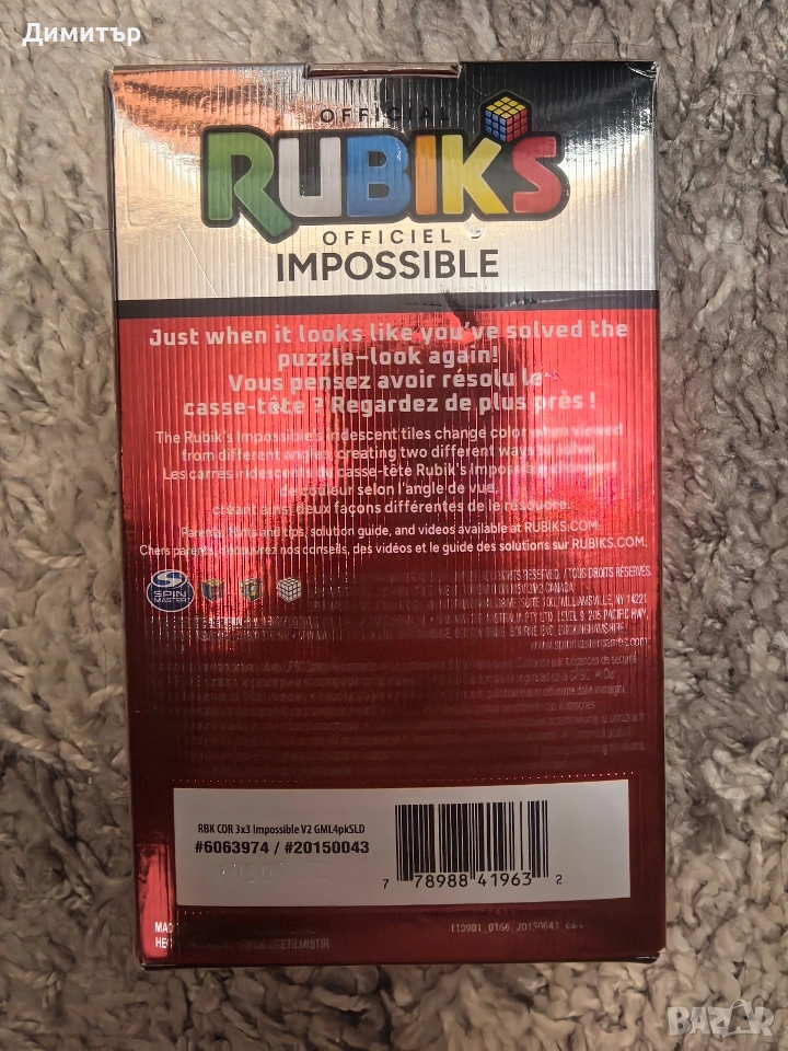 Чисто ново кубче на Рубик с подарък стойка за кубчето! Това е моделът Inposissible/невъзможно подреждане с помощен макет от хартия за помощ при нареждането му! Вижте и другите ми обяви!