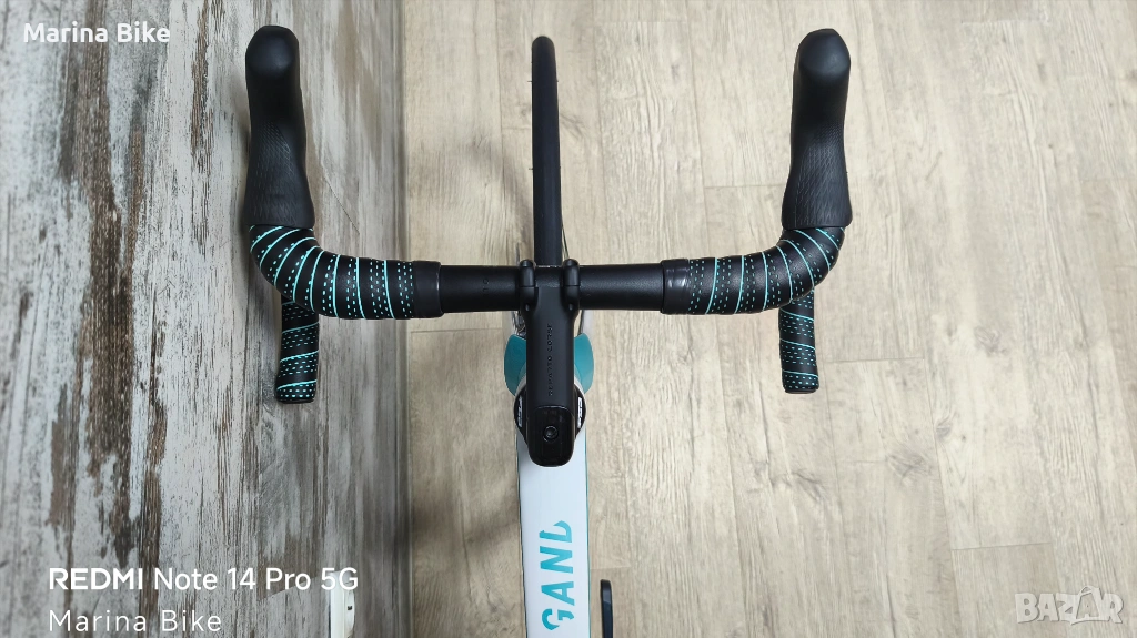 11. Кормило - Bianchi Reparto Corse by FSA, алуминиево, 39 см ширина при командите (център-център), 42 см ширина на дропа, 80 мм Reach ;