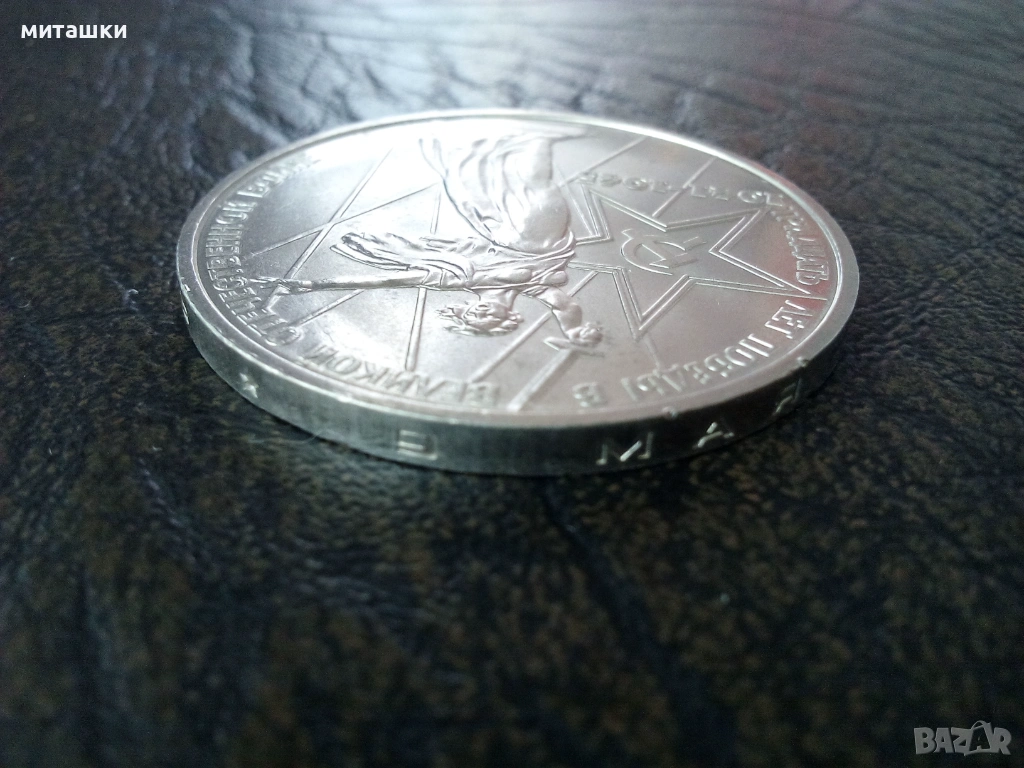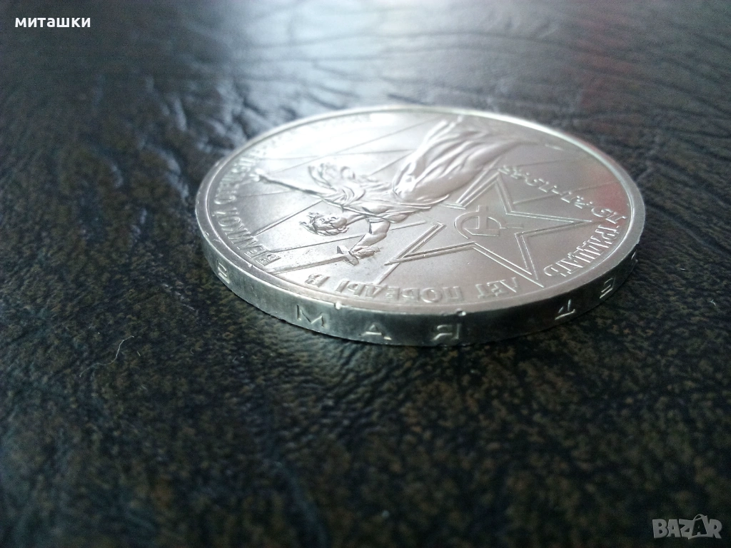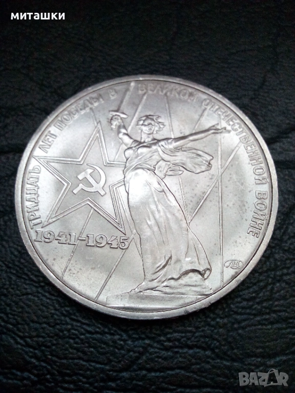 Автентична юбилейна никелова монета 1 рубла 1975 година CCCP 30 години от победата с вдлъбнат текст по гурта в чудесно състояние - за 8 €