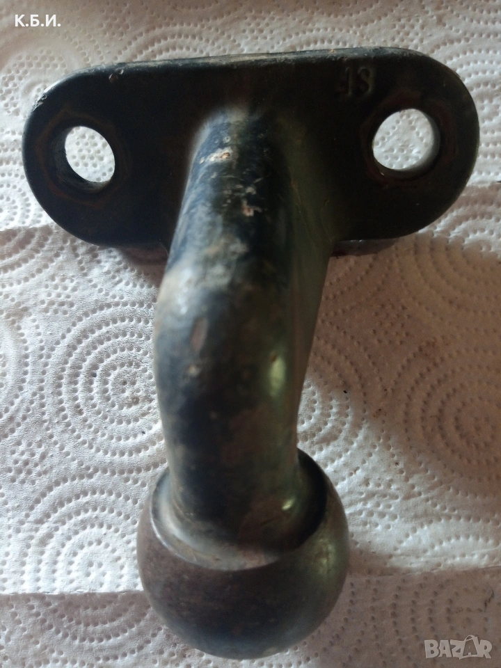 снимка 1 до снимка 2 включително е теглич за бус - 4,5 тона общо тегло.Цената му е 30 евро . Теглича е свален от бус внесен от Германия който се кара с категория - " Ц " и никога не е използван само е стар и боядисван със шасито на камиончето !!!Размери на отворите ф10 и са 4бр . Другите размери са - ш 82 мм. в 54 мм. диагонал 100 мм .