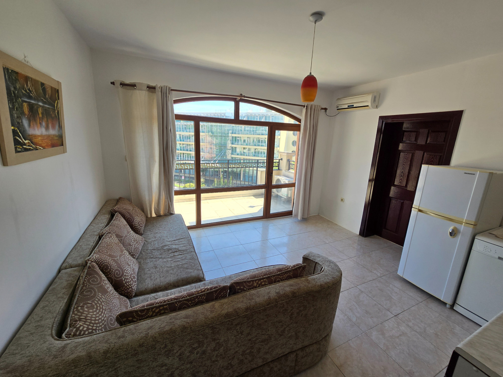 Двустаен апартамент в северната част на Слънчев Бряг. Апартаментът е разположен на пети етаж в сграда с асансьор, южно изложение. С Акт16. Има такса поддръжка в размер на 500Евро годишно. Разстоянието до плажа е около 300м. В близост до целогодишен супермаркет и автобусна спирка.