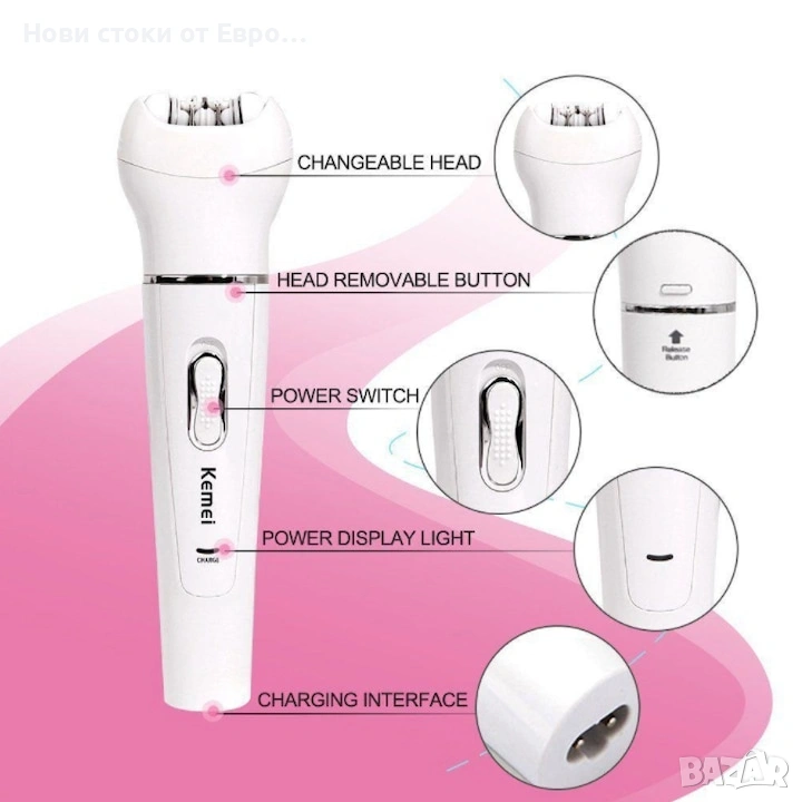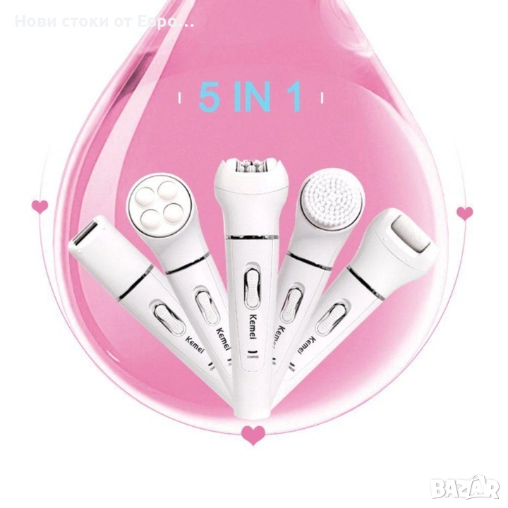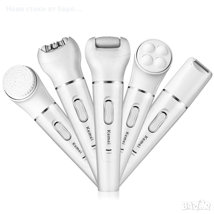 Епилатор Kemei 5 в 1 KM- 2199, Бръснене, Масаж, Почистване и Ексфолиране, Бял