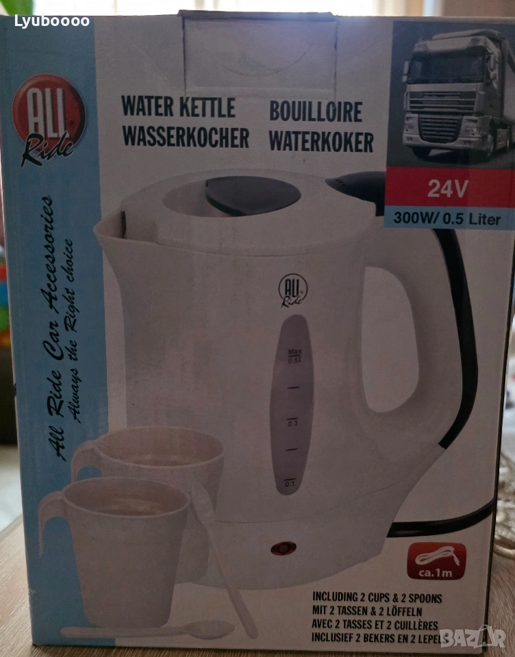 Електрическа термокана с кабел 2 броя чаши и 2 броя лъжици 24V / 300W/ 0.5л