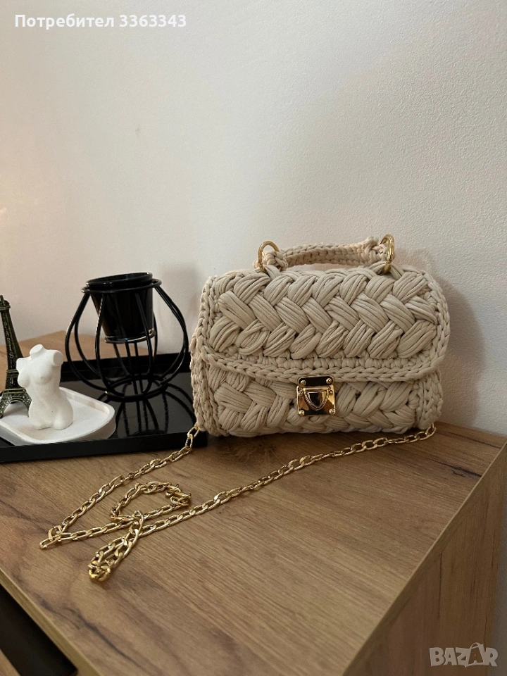 Бежова ръчно плетена чанта → Обява 53483160