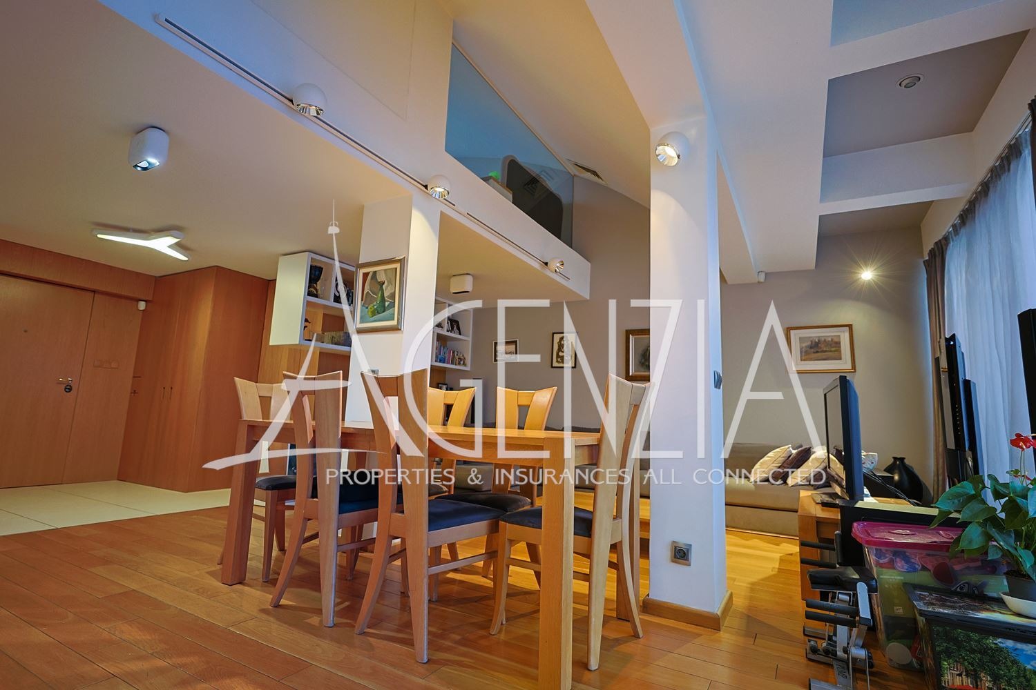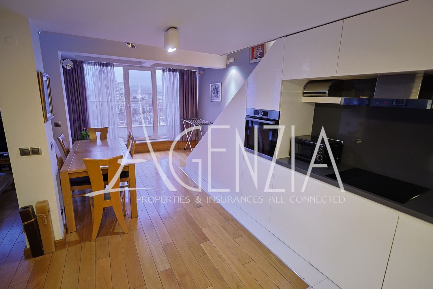 AGENZIA представя просторен мезонет на бул. България', разположен на изключително комуникативно място, в бързо развиващ се квартал. Имотът се намира в непосредствена близост до ресторанти, спирки на градски транспорт и множество удобства в района. Жилището се намира на последен етаж в добре поддържана сграда, оборудвана сос СОТ и видеонаблюдение. Достъпът до последния етаж е контролиран чрез чип система. Сградата е построена през 2008 година.