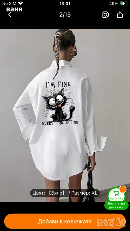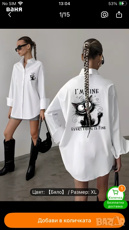 Дамска риза с коте Нова, снимка 1 - Ризи - 53483332 Дамска риза с коте Нова, снимка 2 - Ризи - 53483332 1/2
