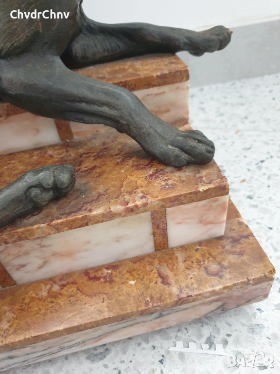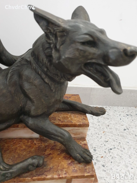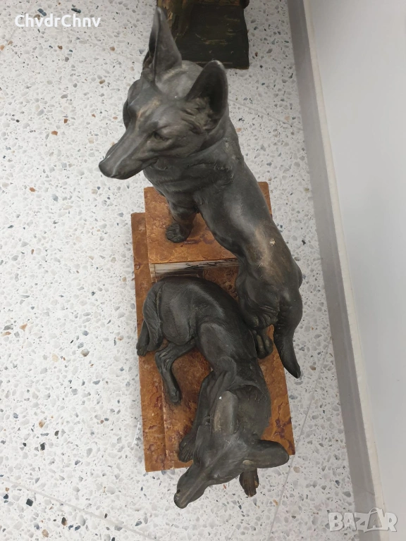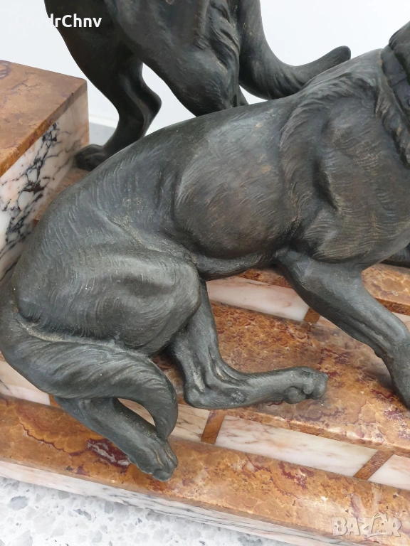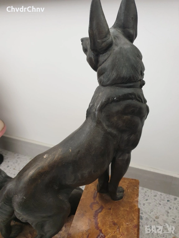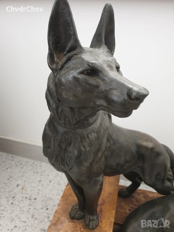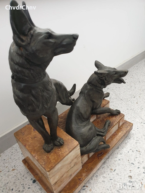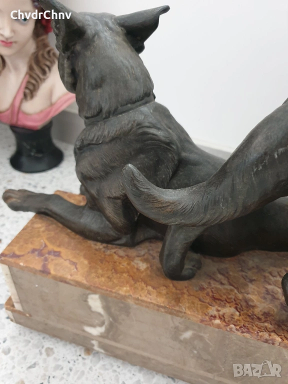 57см-20кг Carvin ЦAM статуетка/стара френска скулптура/фигура на кучета-немски овчарки