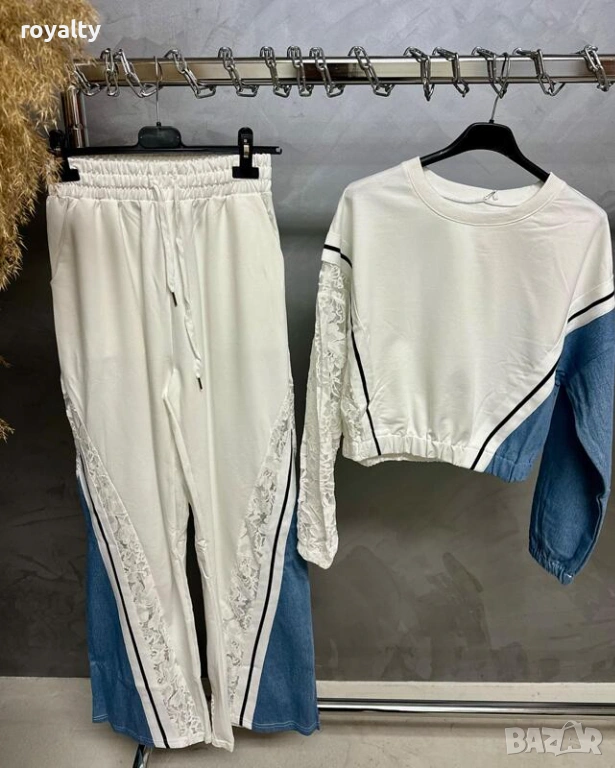 Страхотен комплект е изработен от трико, дантела и деним.
