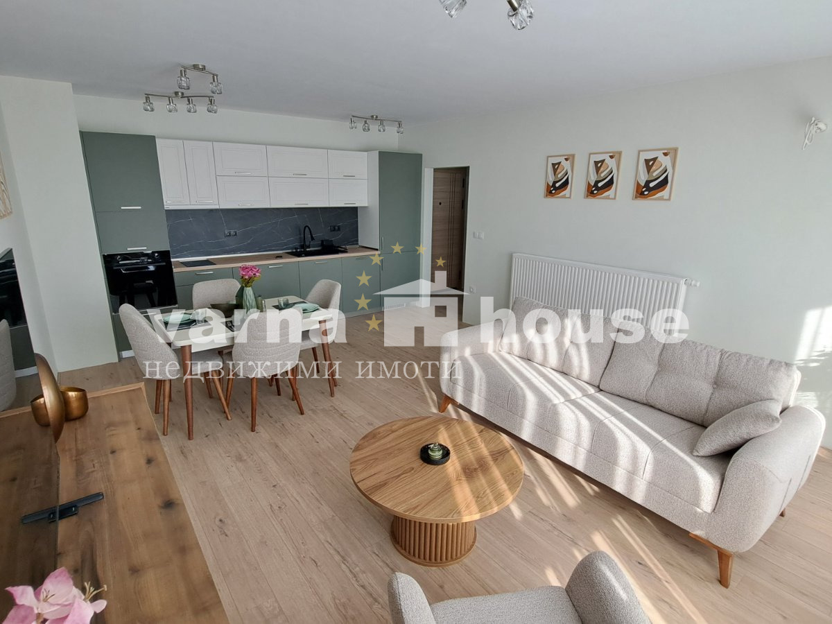 Апартаментът е изцяло обзаведен и оборудван с нови мебели и електроуреди: