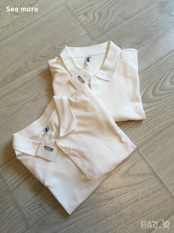Бели тениски от марката MOSCHINO Gym, подходящи както за мъже, така и за жени. В размери XL и XXL. Идеални за спорт и свободното време.Нови с етикет! След съхранение имат няколко петънца които имат нужда от изпиране! Цената е съобразена с това! Цена за всяка 30 euro, при закупуване на двете 50 euro!