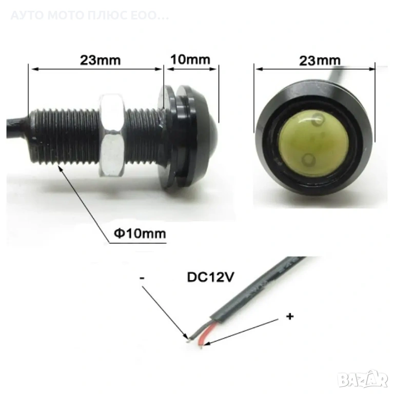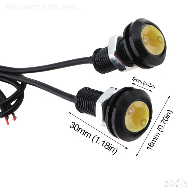 Комплект водоустойчиви дневни светлини с бяла светлина тип орлово око с диаметър по избор - 18мм. / 23мм.