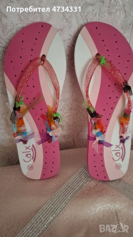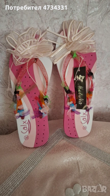 Маркови чехли,джапанки в цвят циклама и бели панделки ,които са с възможност за премахване