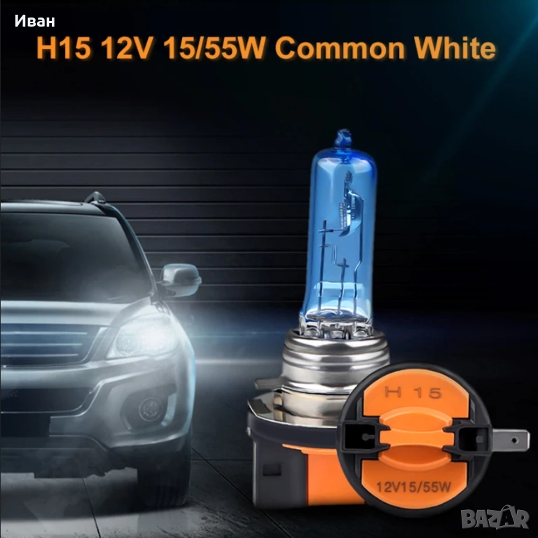 2 бр., H15 халогенни лампи за автомобили 12 V 55 W 6000 K → Обява 53483986