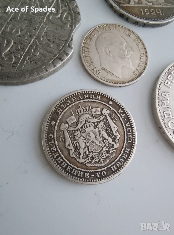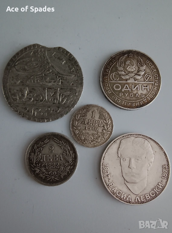 Сребърни Монети Рубла 1924 Юзлук 32гр 5 лева 1973 2 лева 1882 1 лев 1910 → Обява 53484001