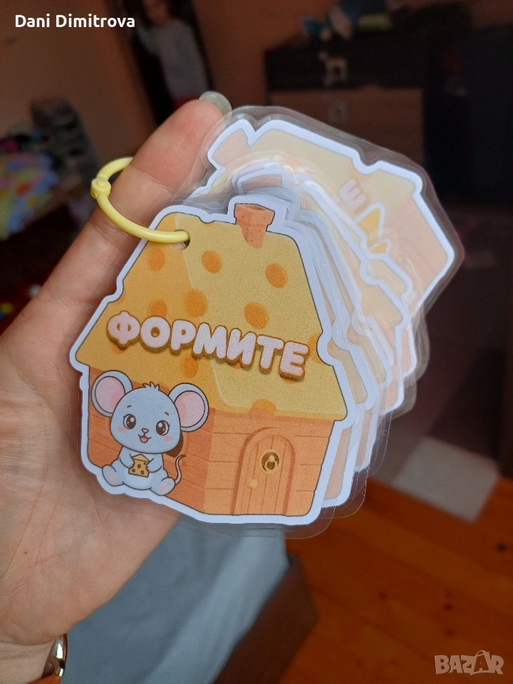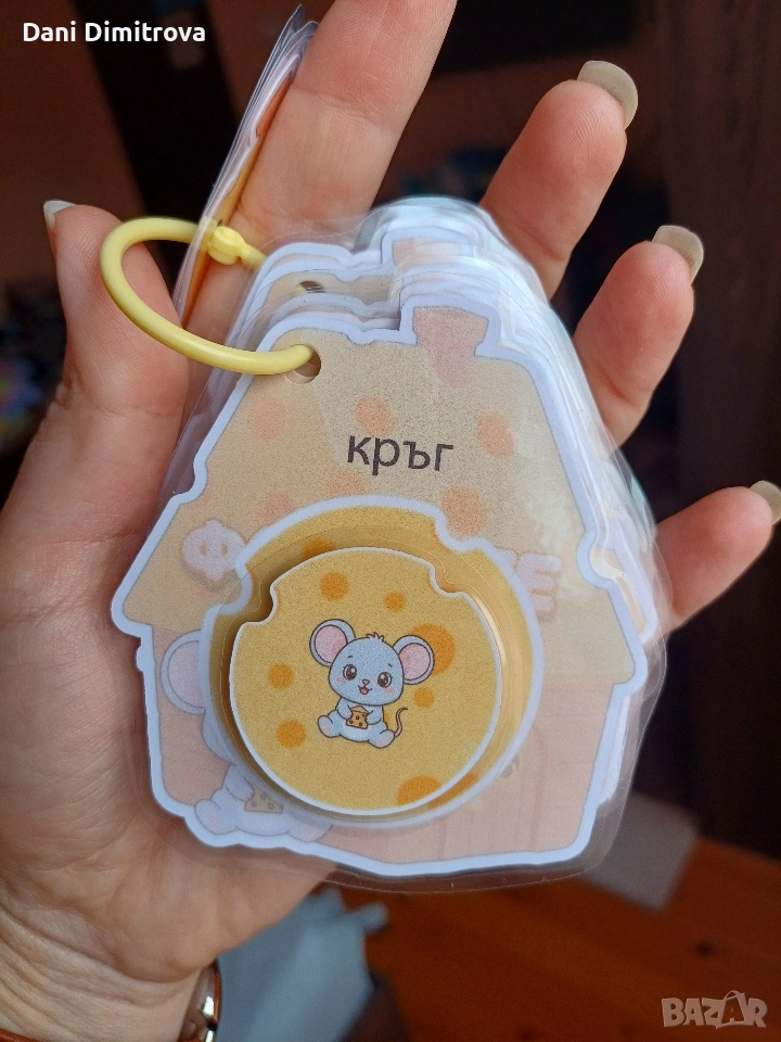 "КАШКАВАЛЕНИ ФОРМИ" 😊 Малка образователна игра за малки ръчички с велкро стикери Сладки кашкавалени форми, които детето подрежда, разпознава и назовава – докато учи чрез игра. ✔️ Развива фината моторика и концентрацията ✔️ Подходящо за деца 2–5 г. ✔️ Игра без екран – без шум, без батерии ✔️ Удобно за вкъщи, път или навън 📎 Карти на халка – здрави, ламинирани и лесни за носене. Пристига в сладурска опаковка. 🎂 Подходяща за почерпка в детската градина. 👛Отстъпка за повече бройки 💶 Цена: 5 € 🎁 Чудесно допълнение към активна книжка 👉 Пиши ми на лично за поръчка