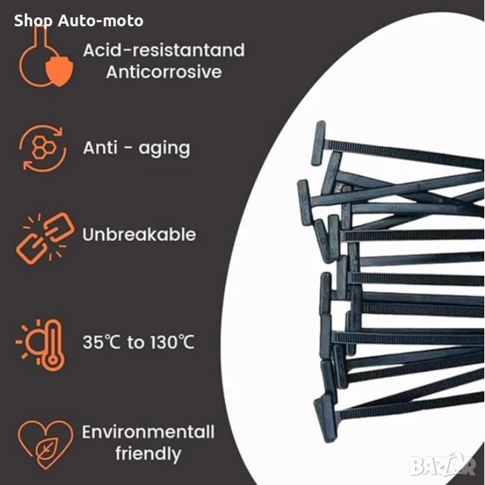 Комплекта включва 50бр катарами за кабелни връзки.