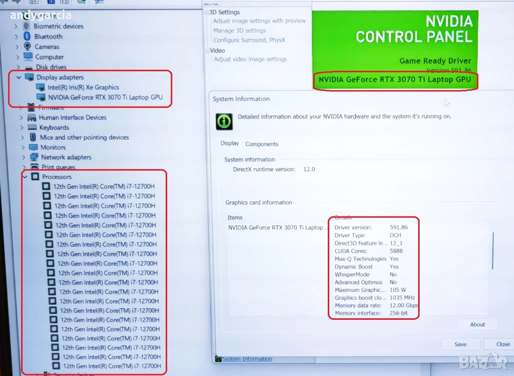 - TOП геймърска видео карта NVIDIA GeForce RTX 3070ti с 8GB GDDR6 памет и 256 бит. шина към нея.