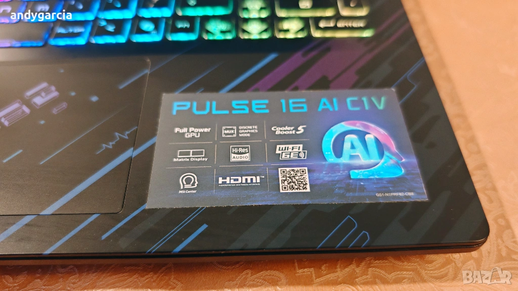Продавам лаптоп геймърски лаптоп MSI Pulse 16 AI C1V във версията :