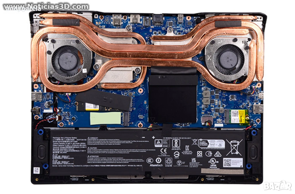 Освен изборените, лаптопа разполага с много ефективно охлаждане състоящо се от